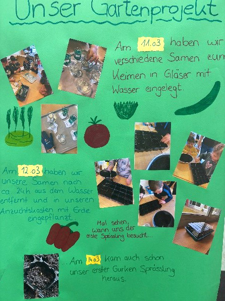 Auch können wir berichten, dass unser Gartenprojekt wieder gestartet hat. Gemeinsam ziehen die Kinder pflanzen in Frühbeeten, die wir dann in die Hochbeete beim Obst und Gartenbauverein pflanzen und im Sommer hoffentlich viele Tomaten, Gurken und Salat ernten können.